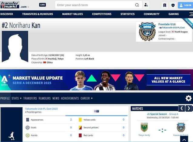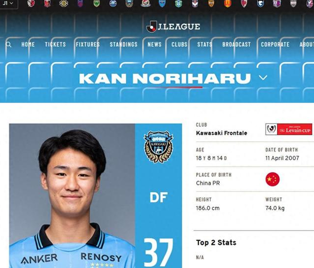 据悉,这名球员名叫关德晴(Kan Noriharu,其关姓为音读Kan,日本人名字中的关一般读作seki,可以确定其不是日本人),身高186cm,体重74kg,司职后卫,据悉关德晴出生于日本东京八王子市,球员一直是川崎前锋的青训球员,本赛季结束后球员进入川崎前锋一线队名单。